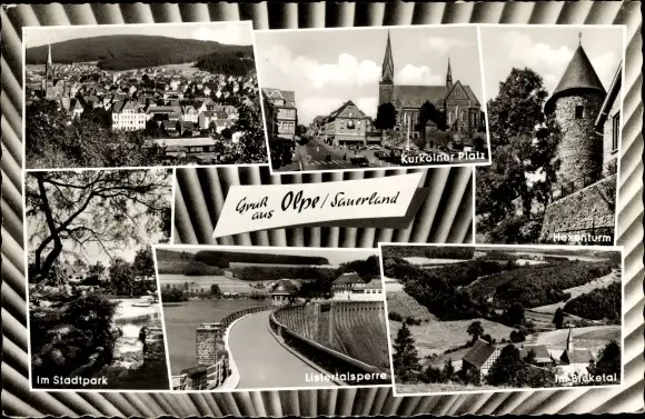 Ak Olpe im Sauerland Westfalen, Kurkölner Platz, Im Stadtpark, Hexenturm, Im Bicketal