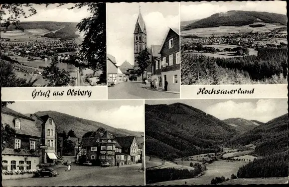 Ak Olsberg im Sauerland, Kirche, Panorama, Ortsansicht
