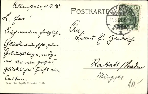 Zustand, siehe Scan, gelaufen, 1908 - ca 14 cm X 9 cm