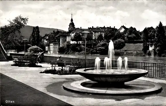 Ak Olten Kanton Solothurn, Teilansicht, Springbrunnen