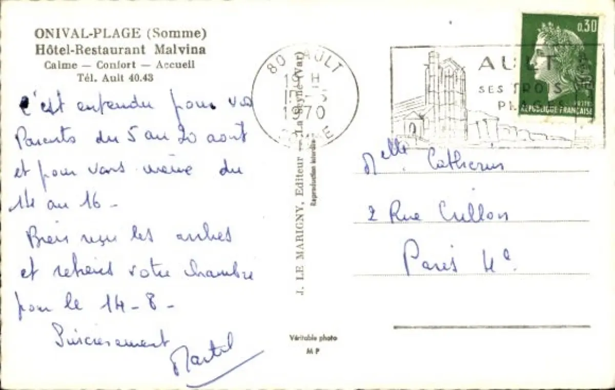 Ak Onival Ault Plage Somme, Hotel-Restaurant Malvina