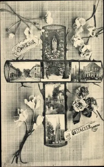 Ak Oostacker Lourdes Ostflandern, Eglise, Straßenpartie