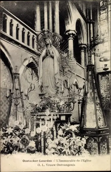 Ak Oostacker Lourdes Ostflandern, La vierge, Marienstatue