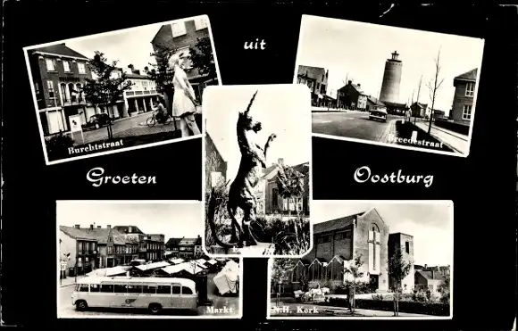 Ak Oostburg Zeeland, Burchtstraat, Markt, Kirche, Breedestraat