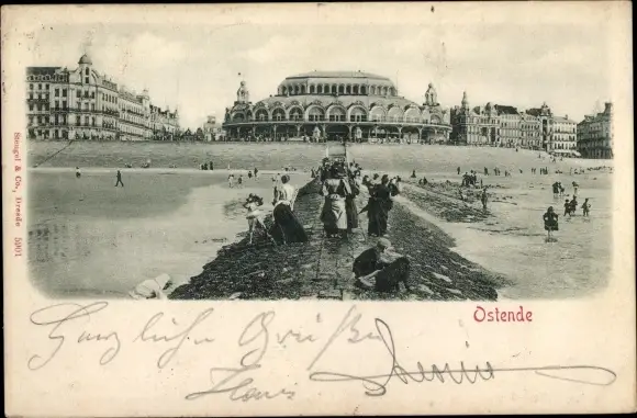 Ak Oostende Ostende Westflandern, Damm, Strand, Gebäude