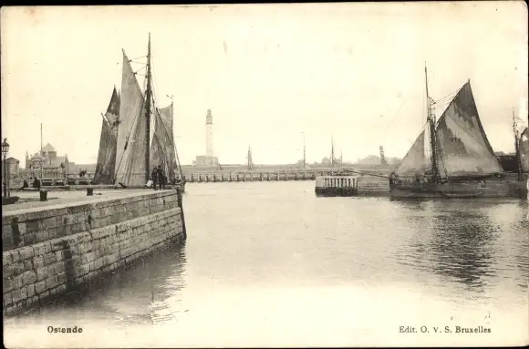 Ak Oostende Ostende Westflandern, Hafen, Boote, Leuchtturm