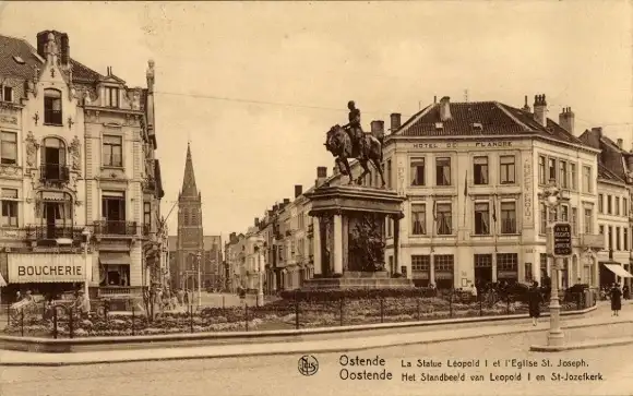 Ak Oostende Ostende Westflandern, La Statue Léopold I, Kirche