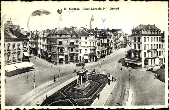 Ak Oostende Ostende Westflandern, Place Leopold 1er, Denkmal