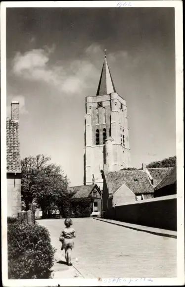 Ak Oostkapelle Walcheren Zeeland, Kirche, Straßenpartie