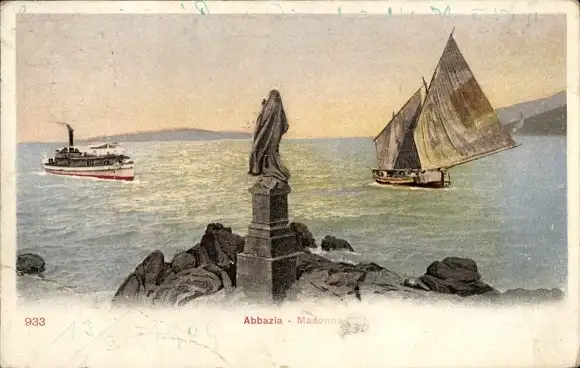 Ak Opatija Abbazia Kroatien, Madonna, Segelschiff, Dampfer