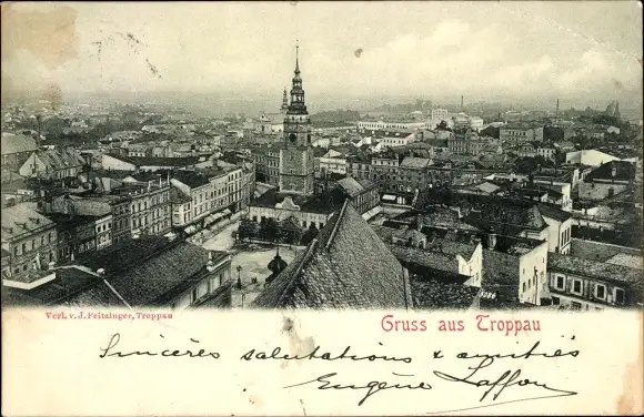 Ak Opava Troppau Region Mährisch Schlesien, Stadtansicht, Turm