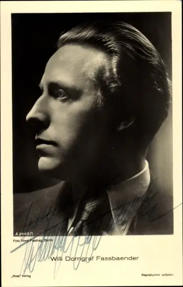 Ak Opernsänger Willi Domgraf-Fassbaender, Portrait im Profil, Autogramm