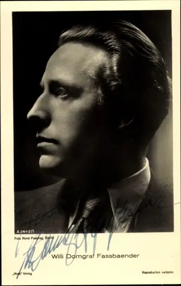 Ak Opernsänger Willi Domgraf-Fassbaender, Portrait im Profil, Autogramm