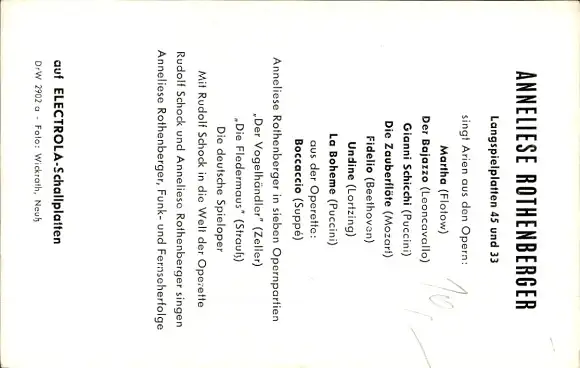 Ak Opernsängerin Anneliese Rothenberger, Porträt