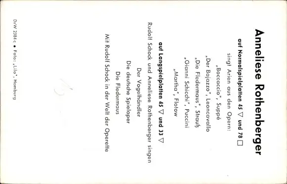 Ak Opernsängerin Anneliese Rothenberger, Porträt