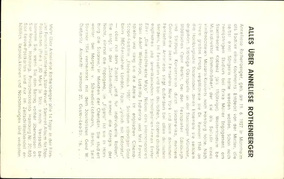 Ak Opernsängerin Anneliese Rothenberger, Portrait, Autogramm