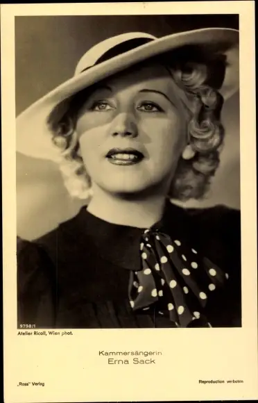 Ak Opernsängerin Erna Sack, Portrait, Hut