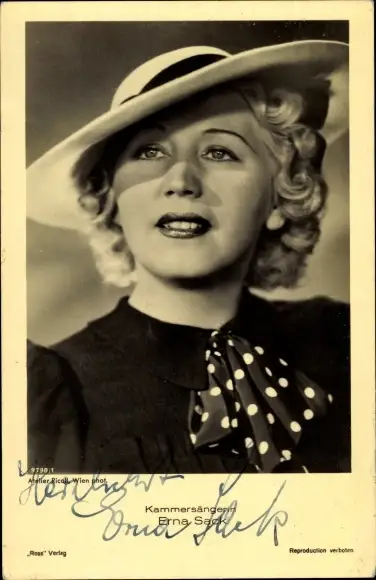 Ak Opernsängerin Erna Sack, Portrait, Hut, Autogramm