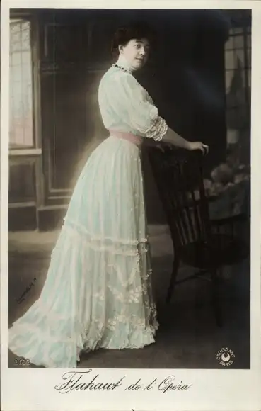 Ak Opernsängerin, Ganzkörperportrait im Kleid, Flahout de l'Opera