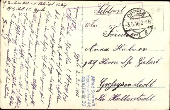 Zustand, siehe Scan, gelaufen, 1916 - ca 14 cm X 9 cm
