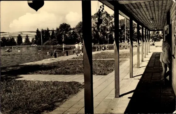 Ansichtskarte, Postkarte, Badeanstalt, Schwimmbad, Freibad, Strandbad, Volksbad