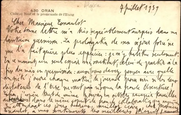 Ak Oran Algerien, Chateau Neuf et la promenade de l'Etang