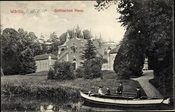 Ak Oranienbaum Wörlitz in Anhalt, Gotisches Haus, Boot
