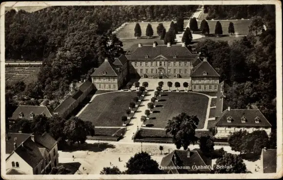 Ak Oranienbaum Wörlitz in Anhalt, Schloss, Fliegeraufnahme