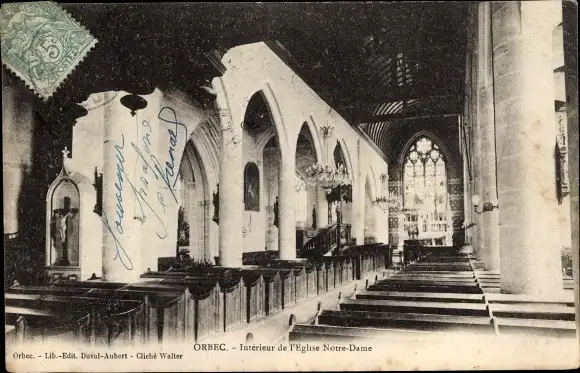 Ak Orbec Calvados, Interieur de l'Eglise Notre Dame