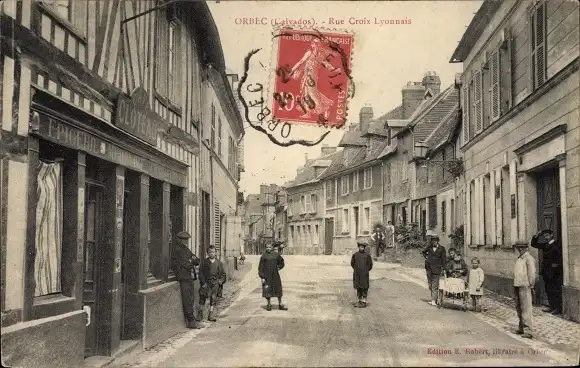 Ak Orbec Calvados, Rue Croix Lyonnais