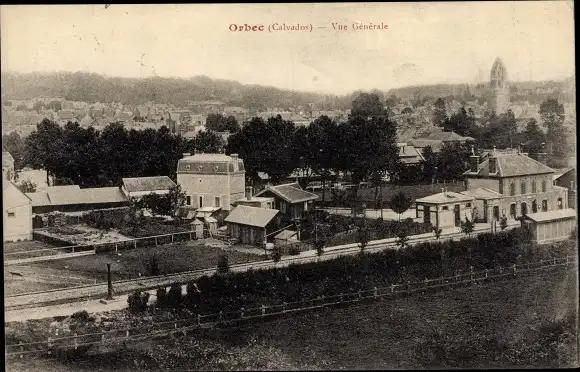 Ak Orbec Calvados, Vue Generale, Bahnhof, La Gare