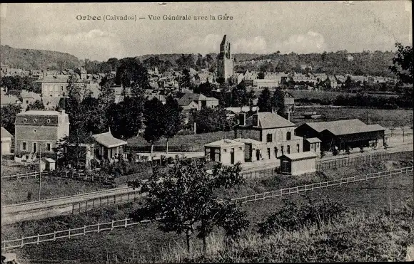 Ak Orbec Calvados, Vue Generale avec la Gare