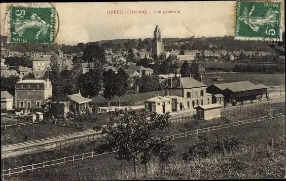Ak Orbec Calvados, Vue generale, Bahnhof