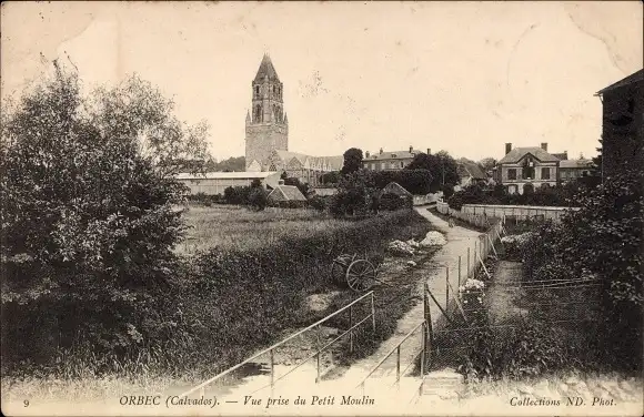 Ak Orbec Calvados, Vue prise du Petit Moulin