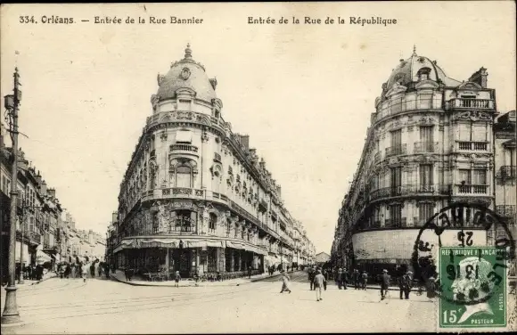 Ak Orléans Loiret, Entree de la Rue Bannier, Entree de la Rue de la Republique