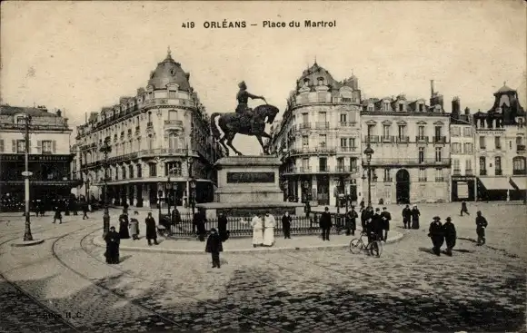Ak Orléans Loiret, Place du Martroi, Statue de Jeanne d'Arc