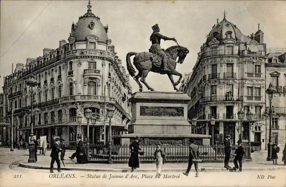 Ak Orléans Loiret, Statue Jeanne d'Arc, Place du Martroi