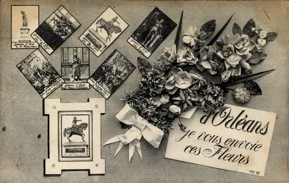 Ak Orléans Loiret, Statue von Jeanne d'Arc, Blumen