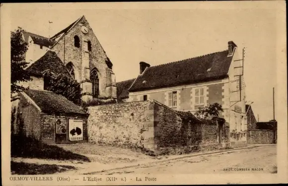 Ak Ormoy Villers Oise, Kirche, Post