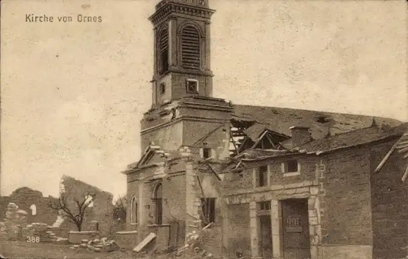 Ak Ornes Meuse, zerstörte Kirche