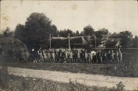 Ak Ortspartie, Deutsche Soldaten in Uniform mit Pferden