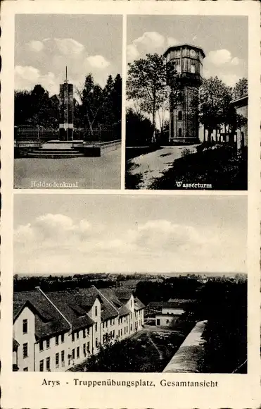 Ak Orzysz Arys Ostpreußen, Truppenübungsplatz, Heldendenkmal, Wasserturm, Gesamtansicht