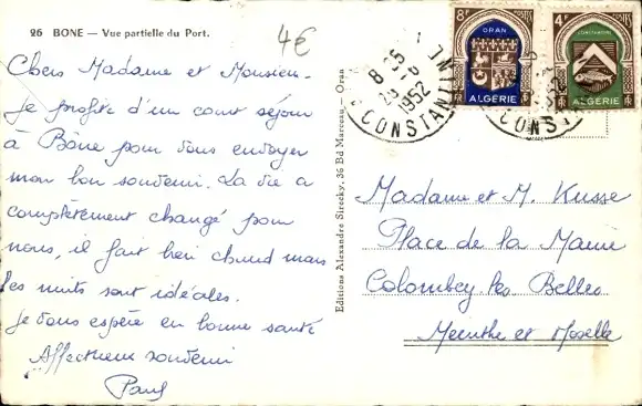 Zustand, siehe Scan, gelaufen, 1952 - ca 14 cm X 9 cm