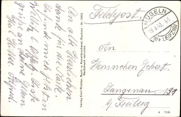 Zustand, siehe Scan, gelaufen, 1940 - ca 14 cm X 9 cm
