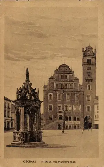 Ak Oschatz in Nordsachsen, Rathaus mit Marktbrunnen