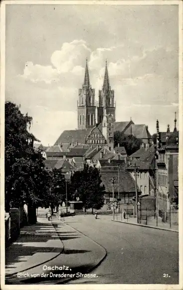 Ak Oschatz in Sachsen, Kirche, Blick von der Dresdener Straße