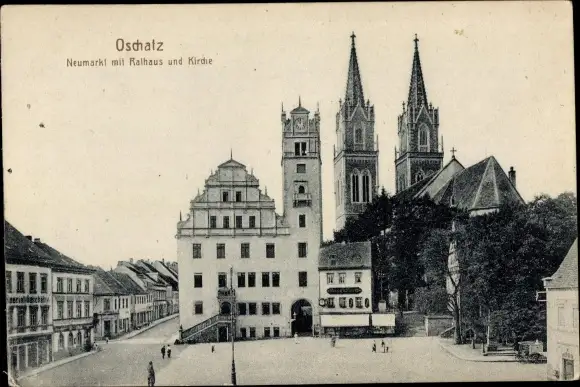 Ak Oschatz in Sachsen, Neumarkt, Rathaus, Kirche
