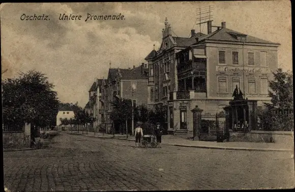 Ak Oschatz in Sachsen, Untere Promenade, Conditorei und Café