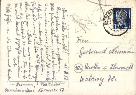 Zustand, siehe Scan, gelaufen, 1952 - ca 5 cm X 3 cm