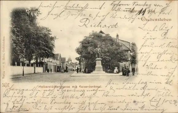 Ak Oschersleben an der Bode, Halberstädterstraße, Kaiserdenkmal